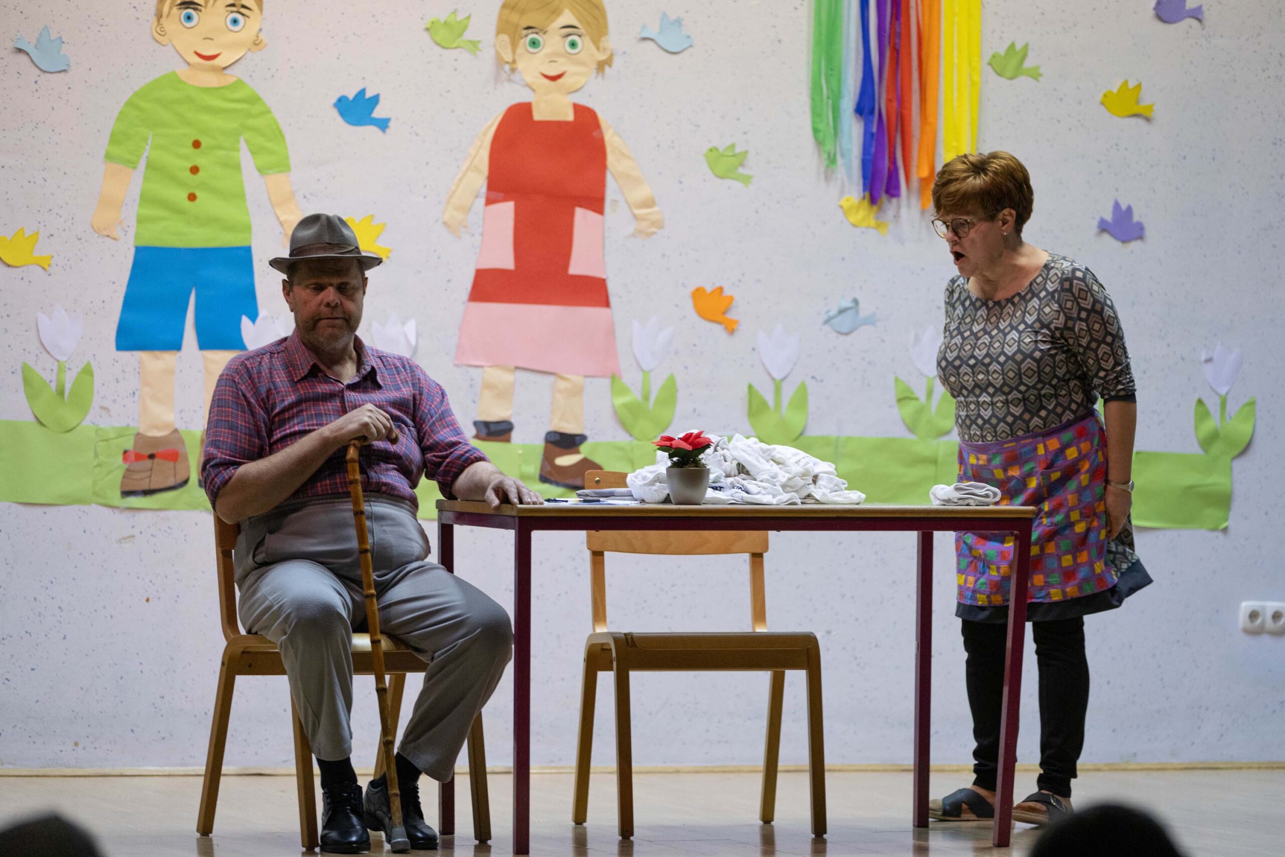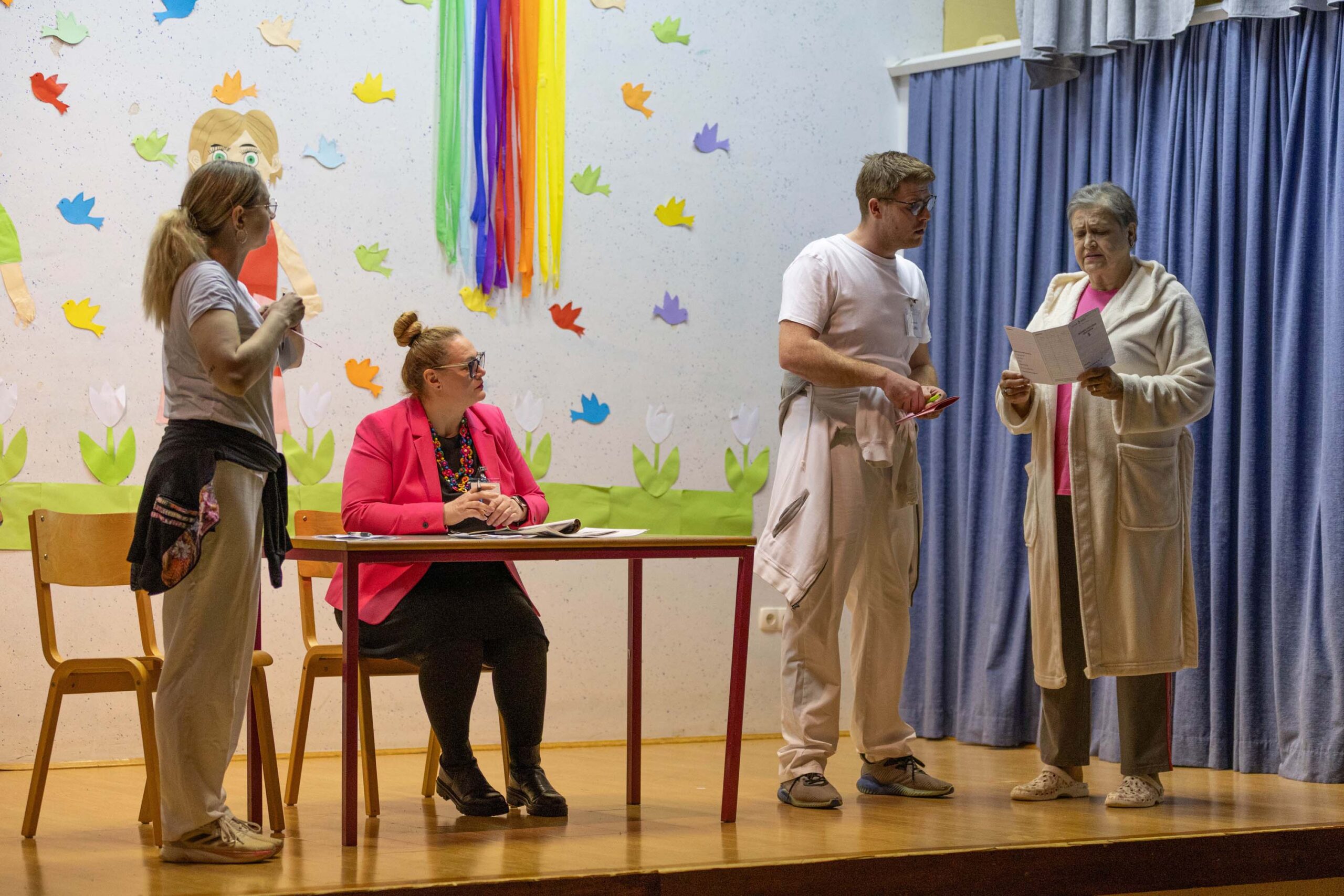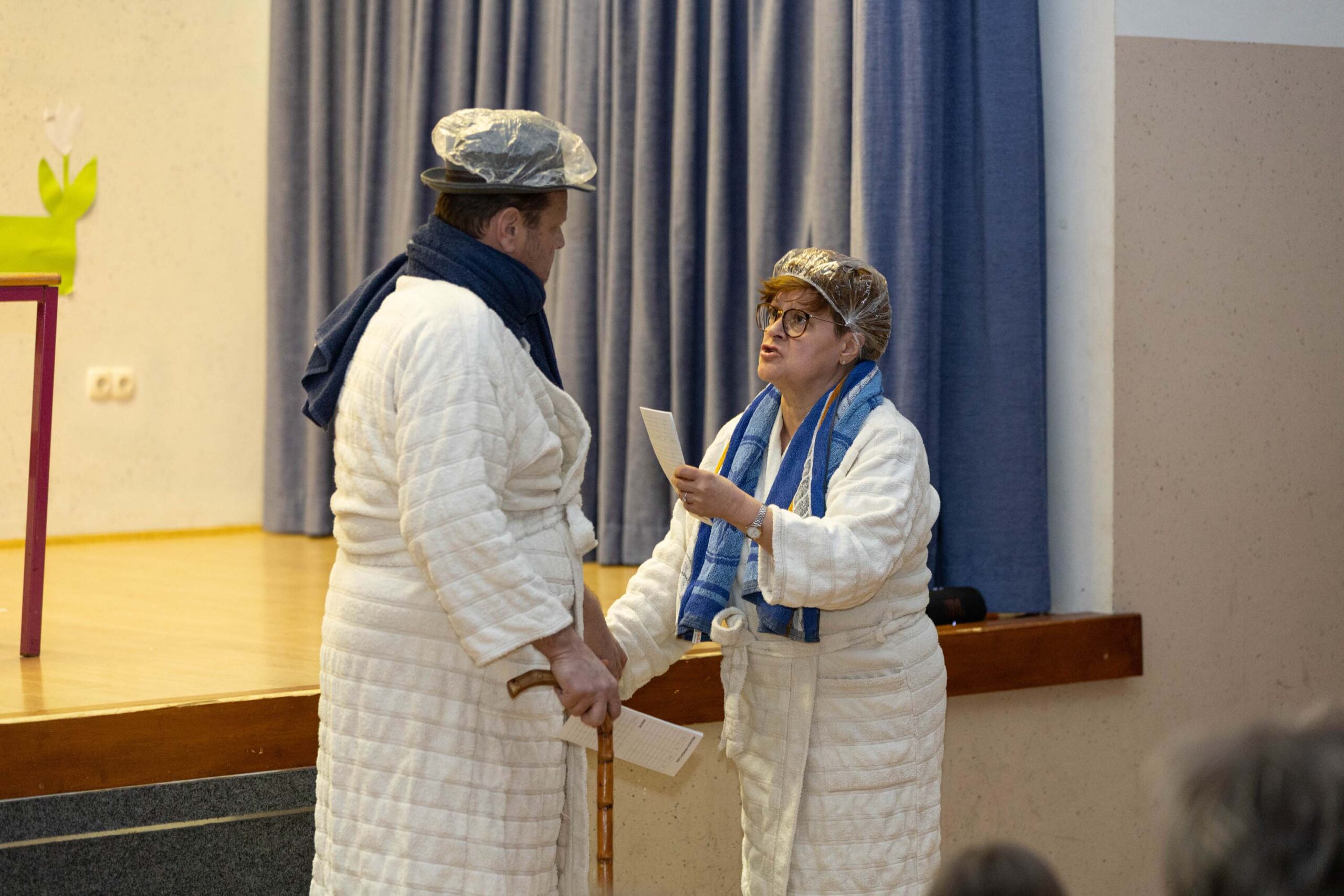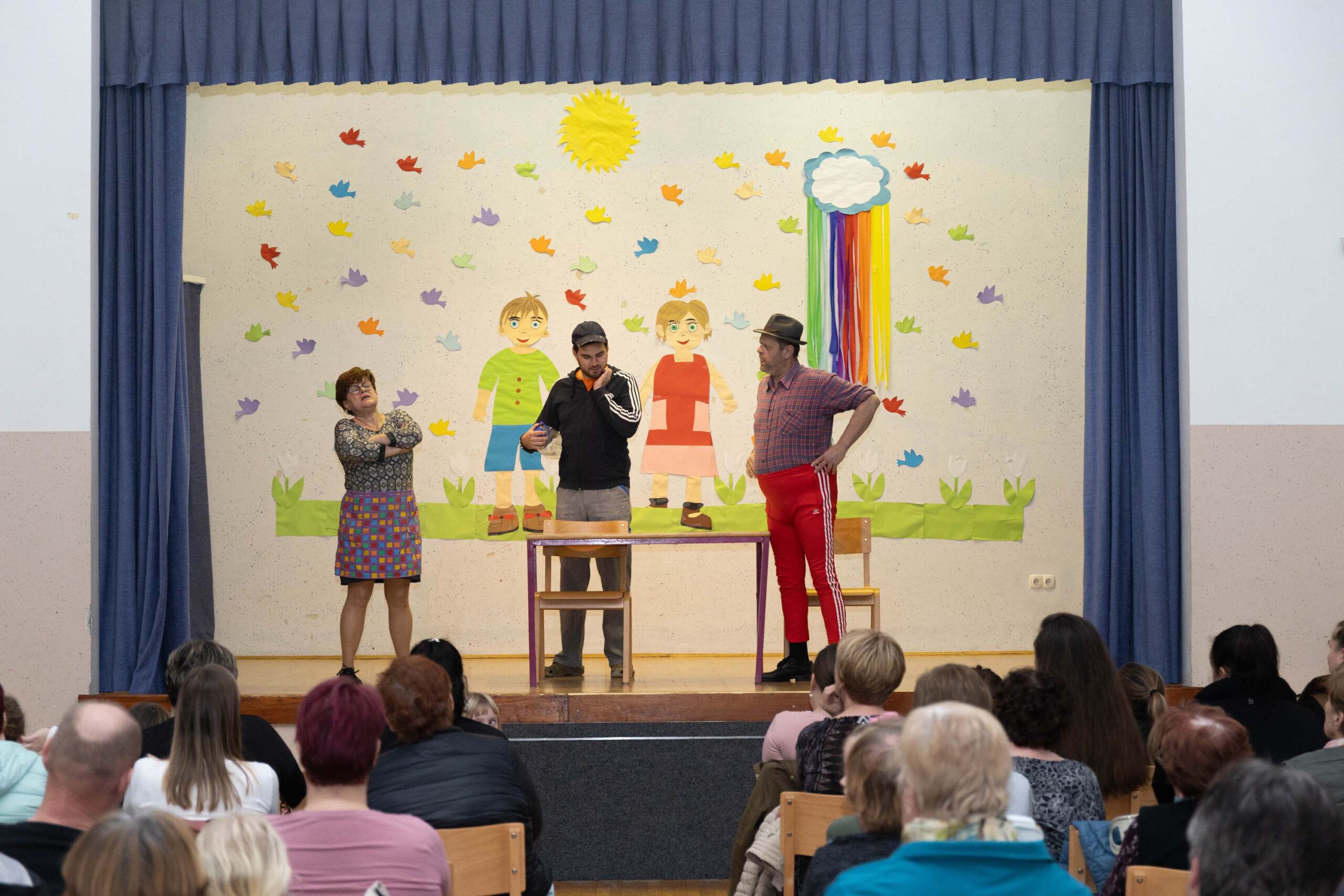 Po predstavi so se gledalci podružili ob sproščenem klepetu, deljenju vtisov in pecivu, ki so ga pripravile odbornice KO RK Veliki Podlog.
