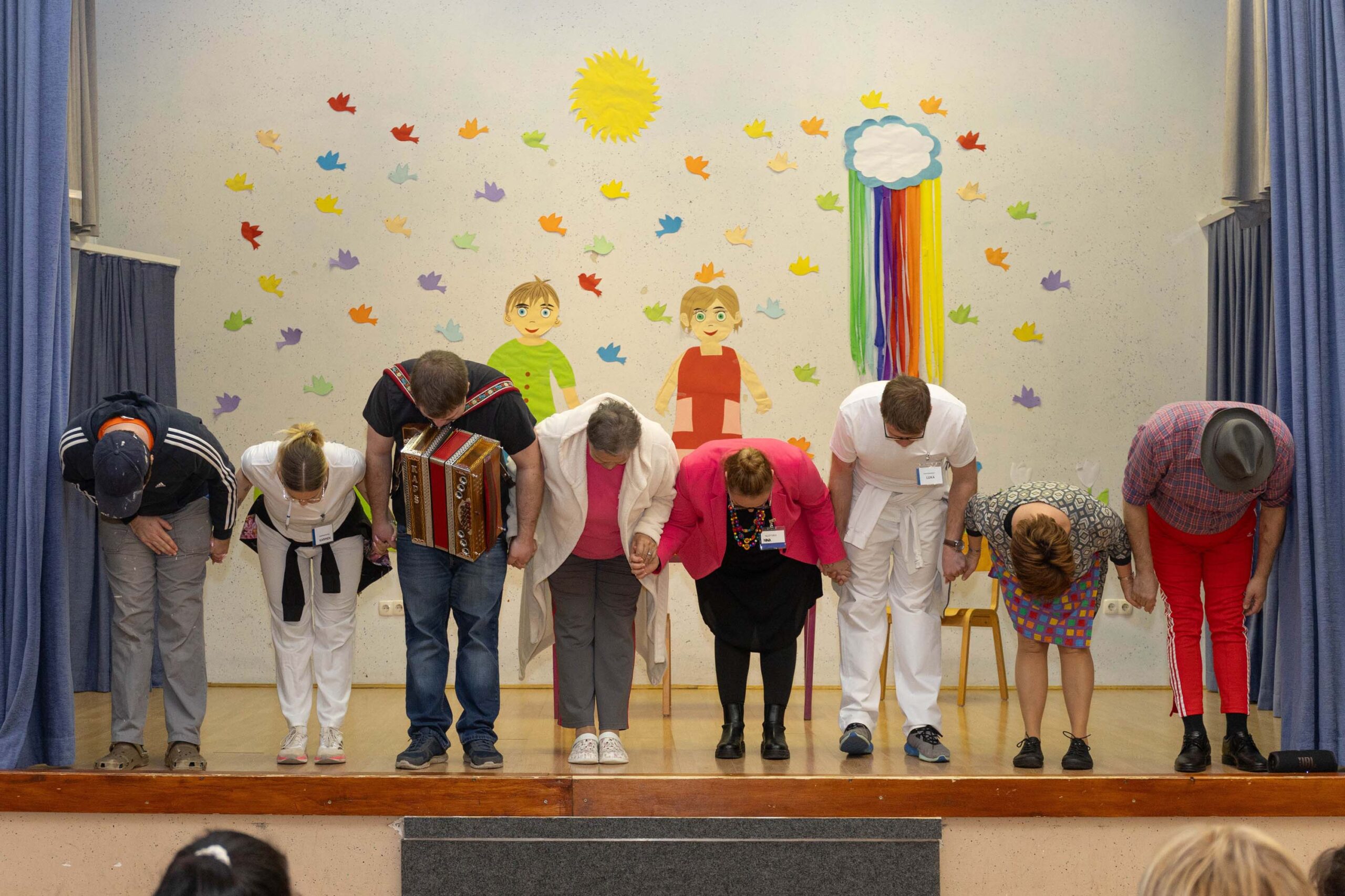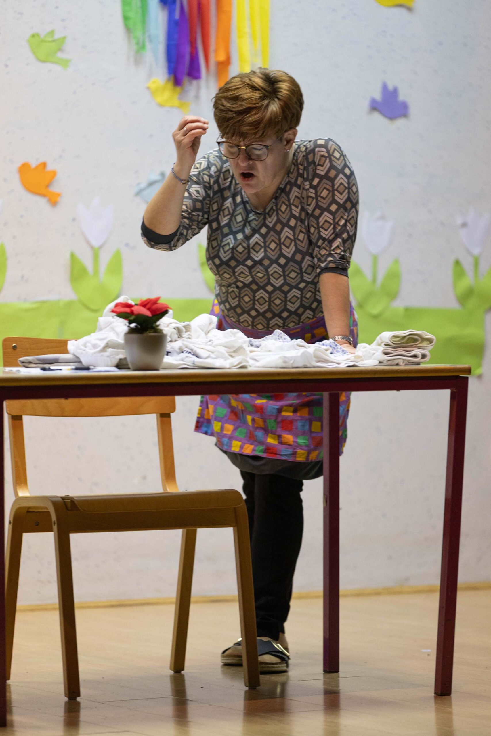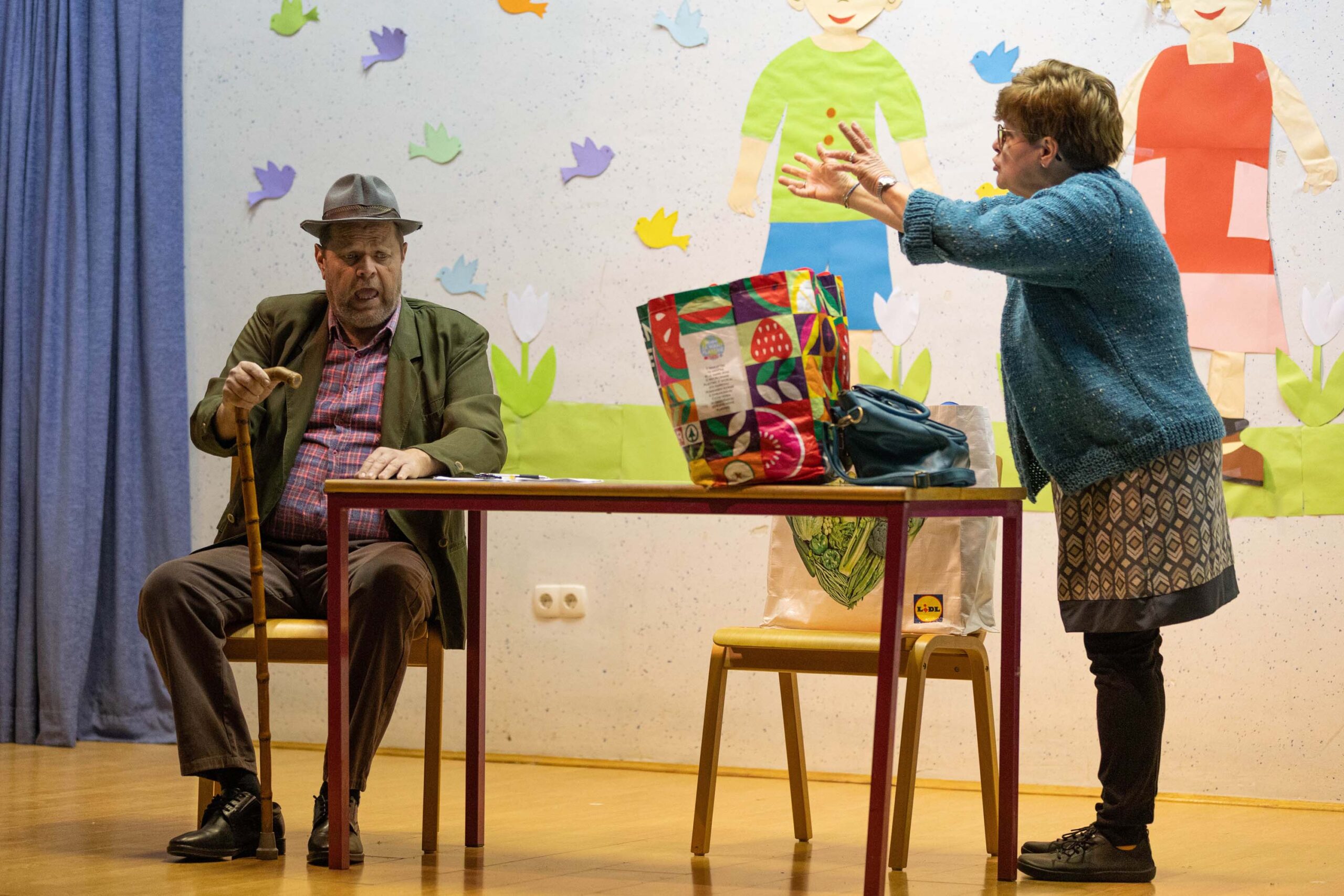 Po predstavi so se gledalci podružili ob sproščenem klepetu, deljenju vtisov in pecivu, ki so ga pripravile odbornice KO RK Veliki Podlog.