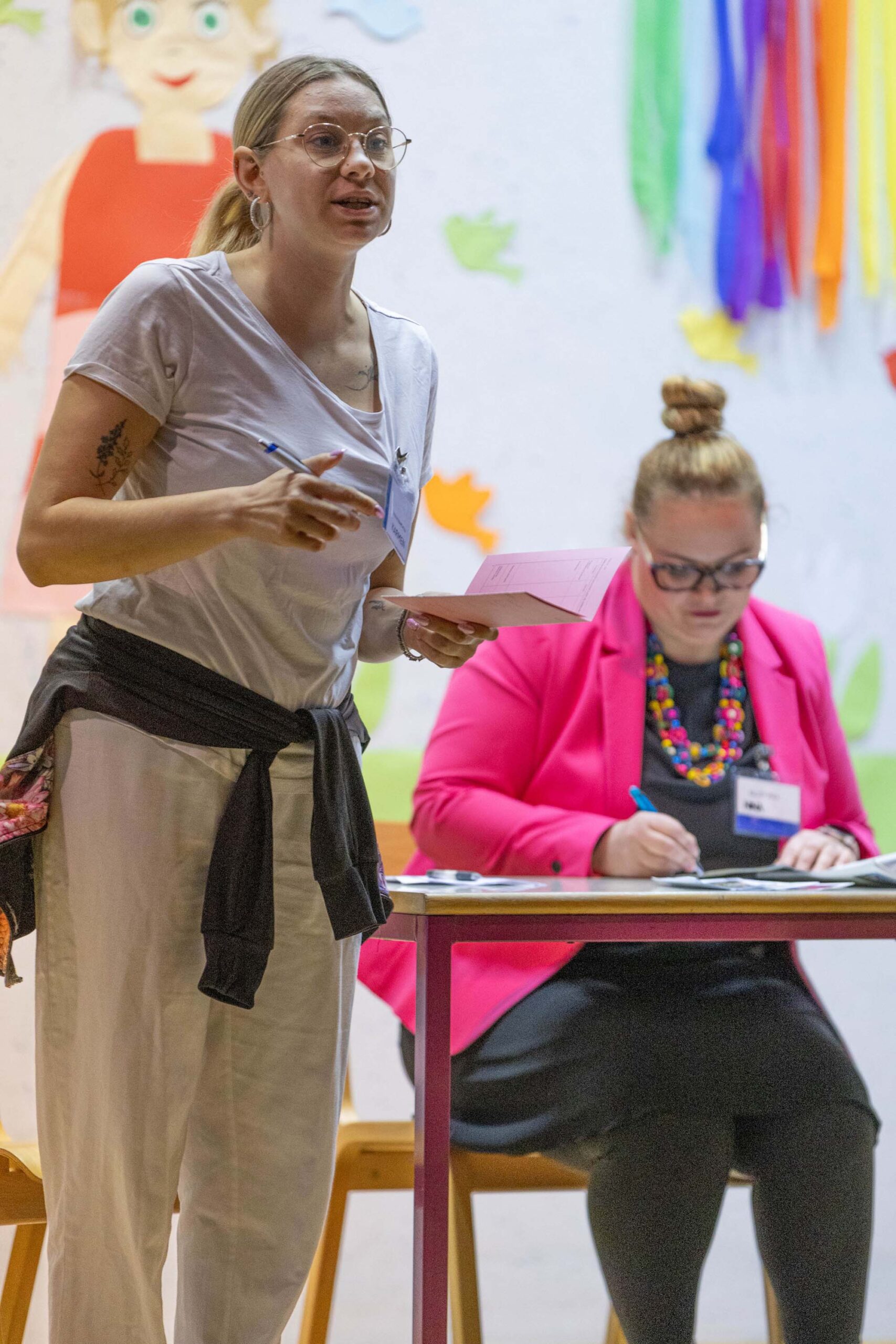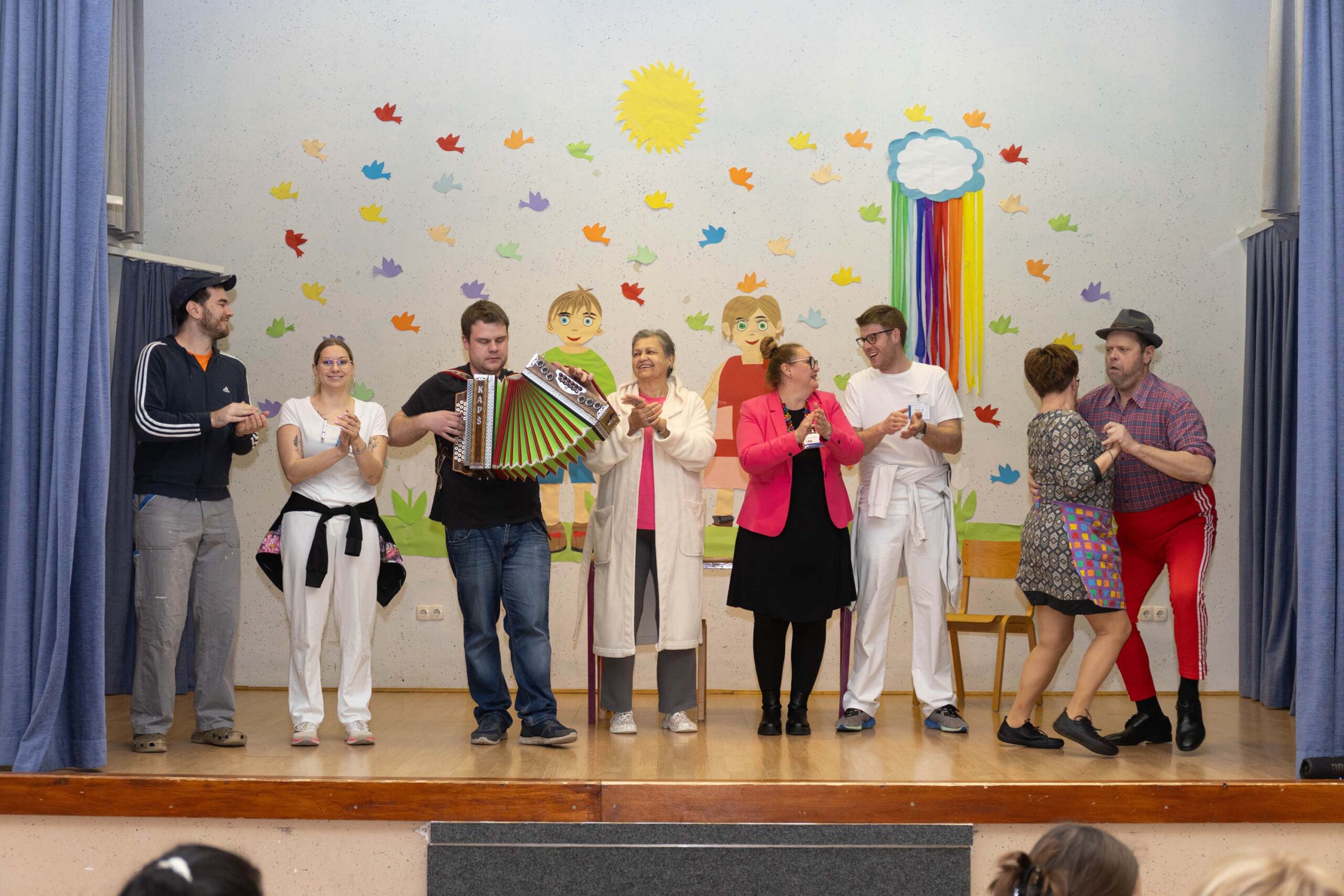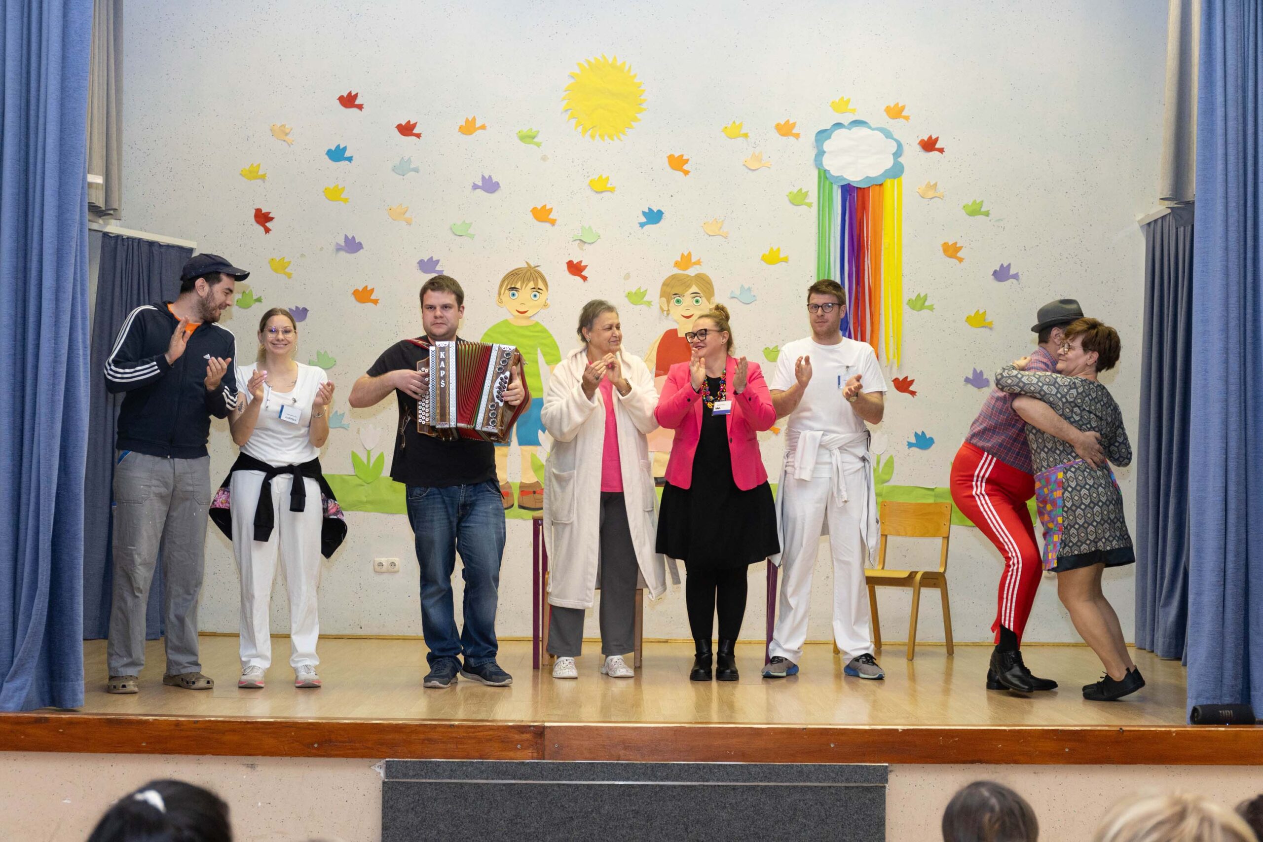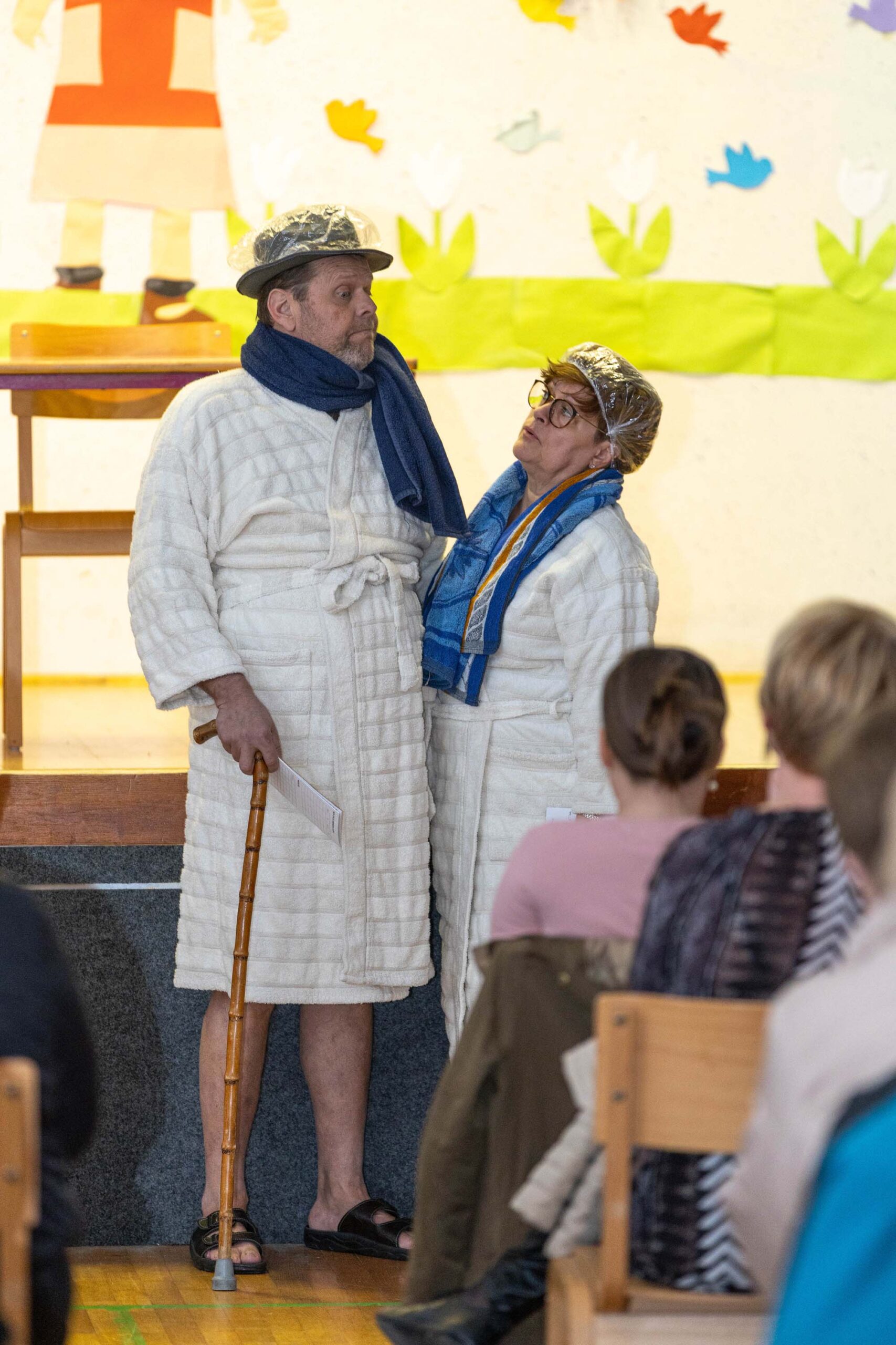 Po predstavi so se gledalci podružili ob sproščenem klepetu, deljenju vtisov in pecivu, ki so ga pripravile odbornice KO RK Veliki Podlog.